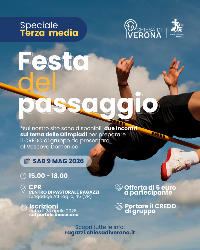 L’evento è esclusivo per i ragazzi e le ragazze di terza media della Diocesi di Verona accompagnati da un animatore/catechista/sacerdote
